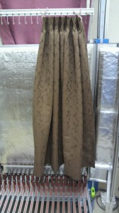 ソフトプリーツを掛け終わった状態です。最初の状態の写真と比べるとかけた違いがわかると思います。生地によっては横に広がりやすいものもあるので、そのような生地のカーテンほどソフトプリーツをかけたほうが良いでしょう。