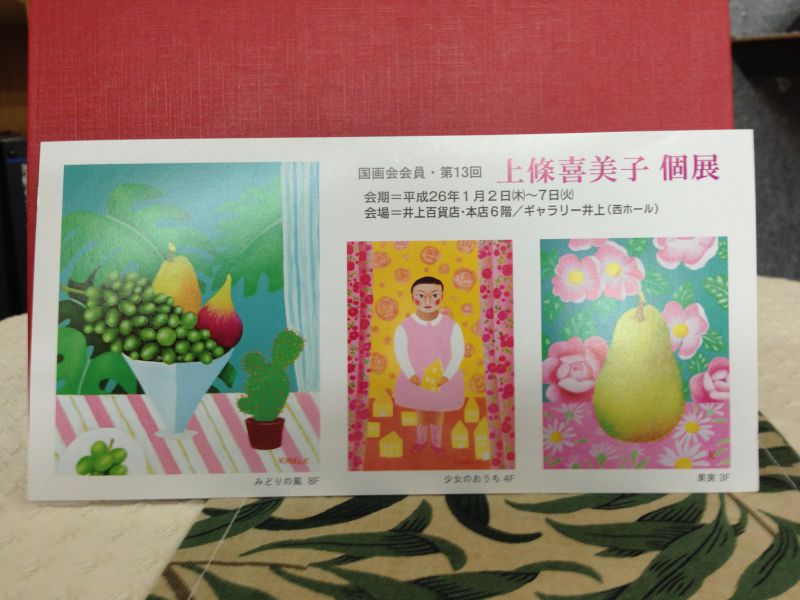 来年になりますが、平成26年1月2日(木)~7日(火) 松本市井上百貨店・本店6階/ギャラリー井上(西ホール)において、「国画会会員・第13回 上條喜美子 個展」が行われます。