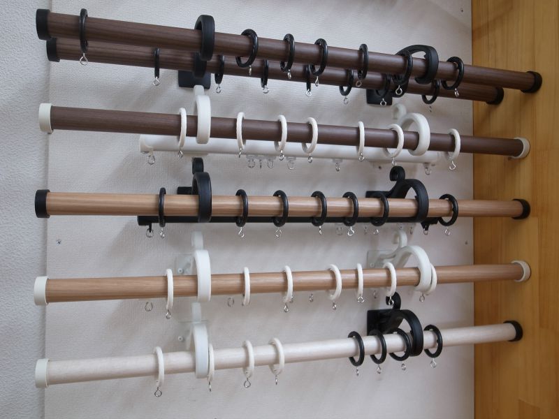 ブラケット(取付金具)やポールのキャップ、リングランナー(カーテンを掛ける部品)には