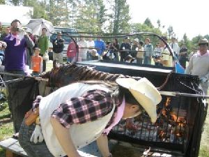 ブタの丸焼きや、縄文式イノシシ汁、縄文アイス、古代米などの試食体験、