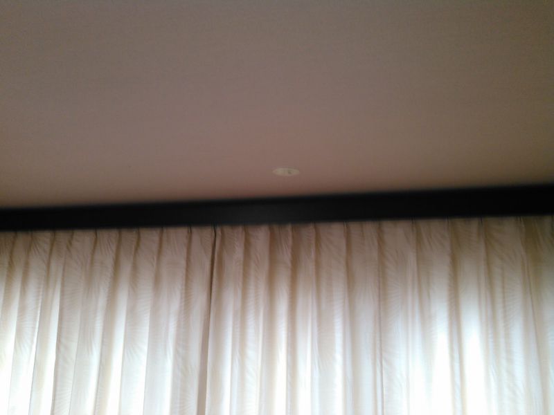 ナットを締めて設置完了。天井際の回縁すぐ下に設置しました。