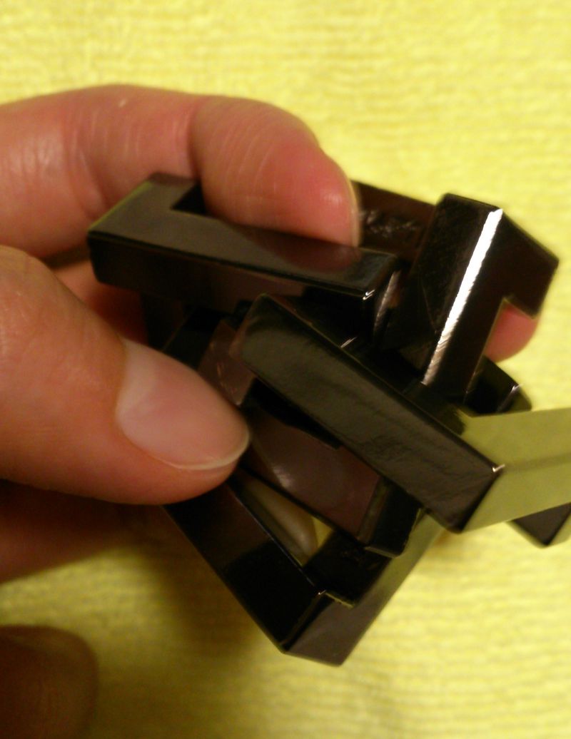 このパズル、堅い鉄製なので、無理やり解こうとしてもびくともしません。
