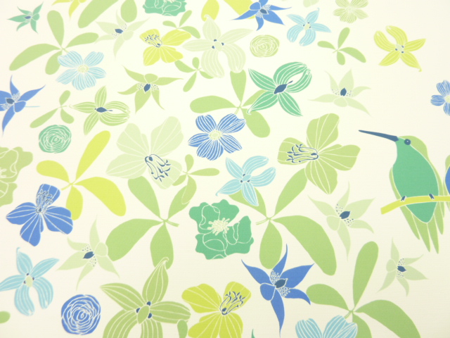 他には湖で泳ぐ魚をブロック風にデザインした柄や、カラフルな小鳥柄等があります。