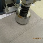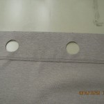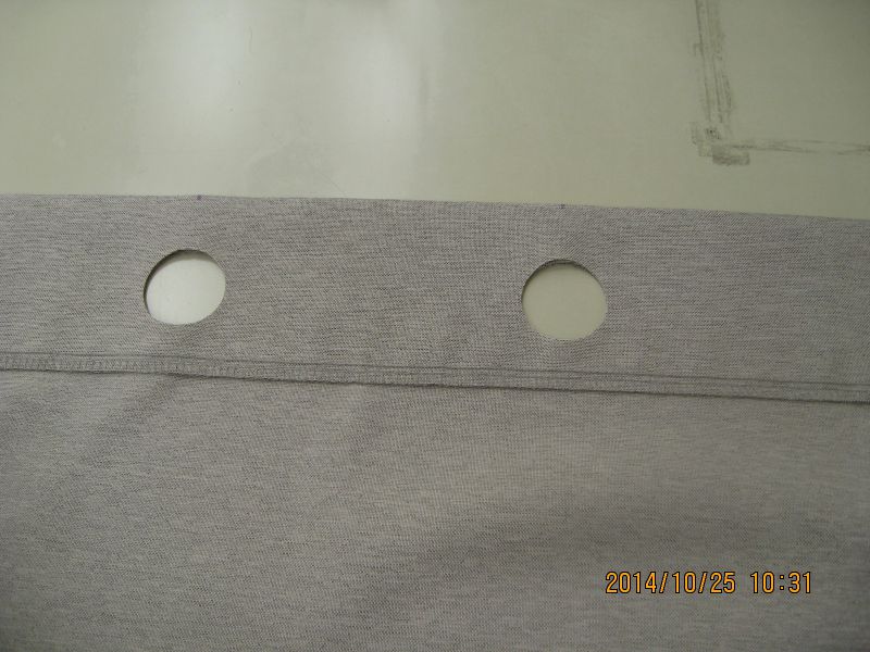 カーテン本体の製作としては普通のカーテンと同じ用に上部に芯地を入れて縫いつけ、裾を10cmWの折り返しで縫ってウエイトを入れて両耳を縫います。山つまみをしないだけで製作工程はここまでは一緒です。ここから上部にハトメ穴を開けていきます。
