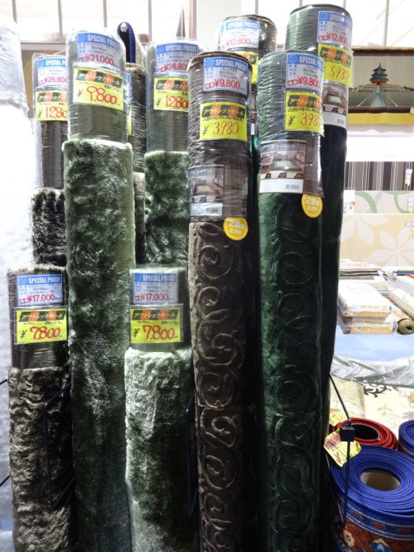 ごちゃごちゃした写真ですが、2種類(各2色づつ)のカーペットがあります。