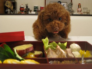 さてこちらの御節。自画自賛になりますが、うちのワンちゃん達用に作ってみました。