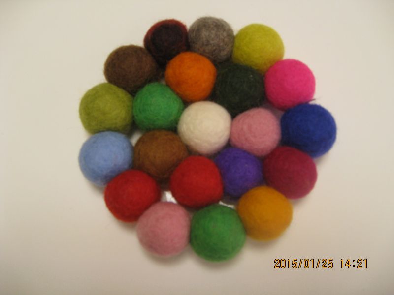 上の写真。昨年の年末辺りにフェルトボールを少々購入していたのですが、本日やっと縫い合わせました。