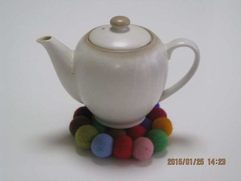 これはポットを上に置いてみましたが、ちょっとした鍋敷き位の大きさです。ちょっとかわいいですよね?