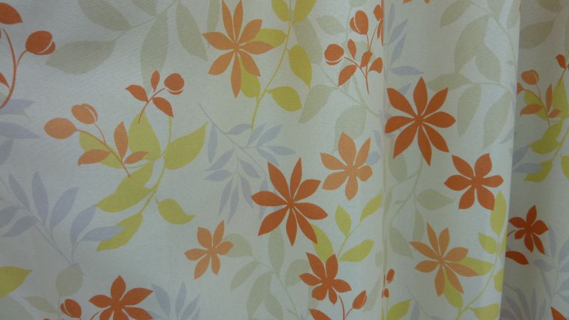 右と左の写真は、同じカーテンの生地の表(左側)と裏(右側)になります。