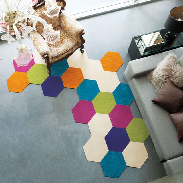 タイルカーペットというと、四角形がメインですが、こんな六角形のものもあります