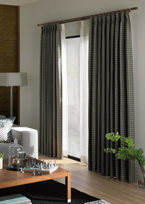 モダンで洗練された印象のデザインです。直線的なフォルムで、天然木のフィニアル(キャップ)とシャンパンシルバーをアクセントにしたレールです。角型デザインのリングランナーは業界初。従来よりも約25%(当社比)の操作力低減と、40~41dB(デシベル)程度の静かな操作音を実現しているそうです。(カラー4色)