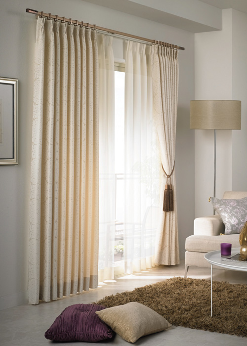 今回は「装飾レール」と呼ばれる種類のレールが発売されました。装飾レールはいろいろな種類があり、使っている素材も木製や真鍮・アルミなど金属製、樹脂仕上げのものなどがあります。装飾レールは見せるためのレールなので、カーテンを掛けるには、レールを隠さないようにリングに吊ります。