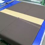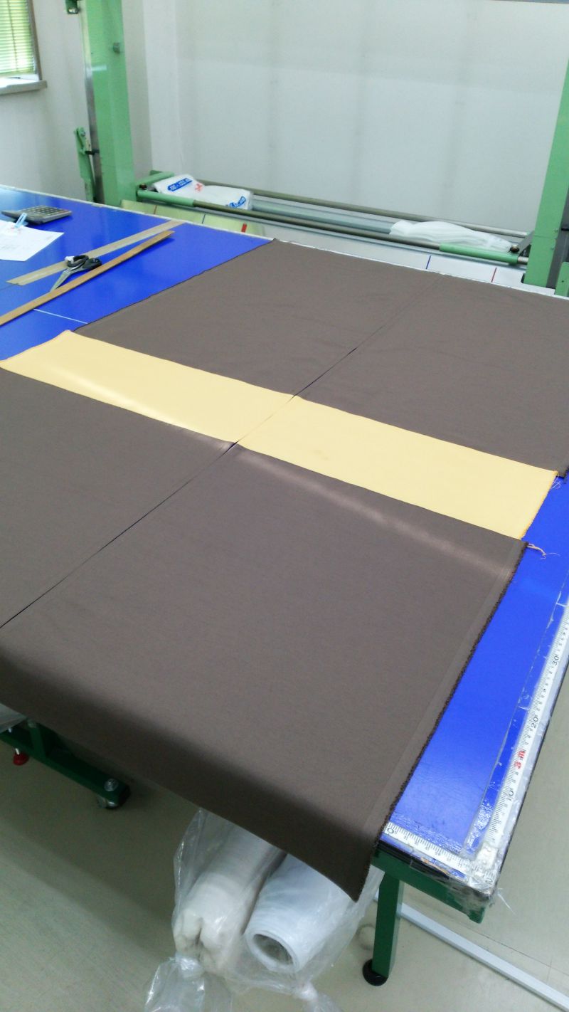 下部辺りを別配色をもってくるためにまずはボーダーのための巾継ぎをしました。中の配色の生地丈をしっかりと計って継ぎます。この時は上下の配色分の生地が後で切るので大雑把な長さです。