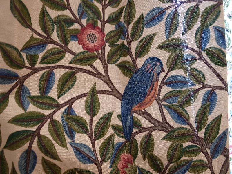 朝・綿混紡の素材感、色鮮やかなプリントの緻密さ、非常に魅力的なカーテンです![]()