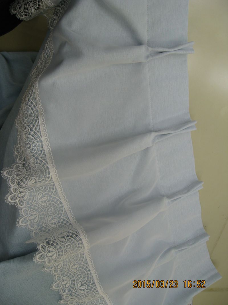 厚地生地に重ねたレース生地はボイル生地でレース下部分にはトリムを合体させています。