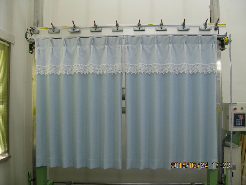 既製品などで見かけたことがあるかもしれませんが、こちらの写真のカーテンは上部にレース生地を合体させたカーテンです。茅野市にあるゆうあいでは自社縫製所を持っており、カーテン縫製のプロが毎日カーテンを制作しています。近郊ではカーテン縫製をやっているところがあまり無いので、他店との差別化がございます。