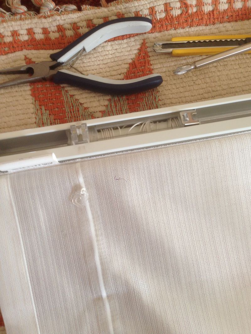 こちらはプレーンシェード チェーン式のメカになりますが、昇降コードが切られて、ドラムに巻きついてしまっています。