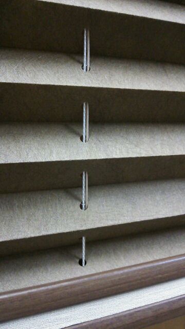 従来のプリーツスクリーンはこのようにコードを通すための穴が開いています