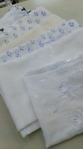 只今、暖簾をコツコツ製作中。カーテン縫製の合間に少しずつ枚数を増やしています。近々店内に置きはじめるので、ご来店お待ちしています。