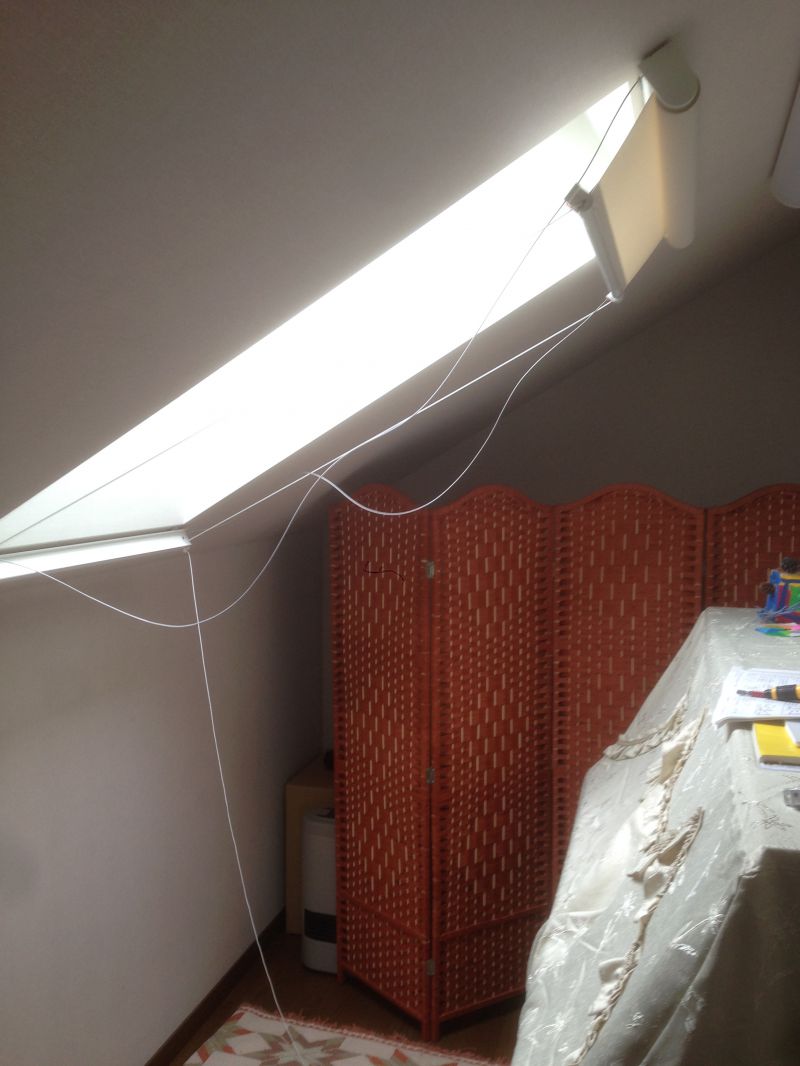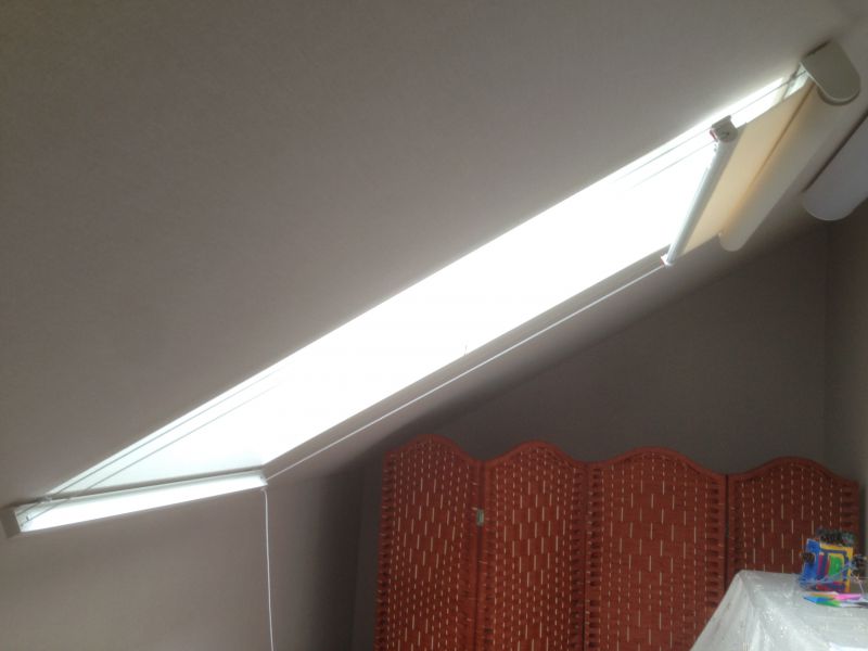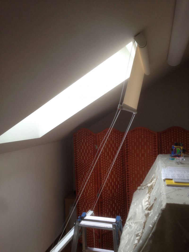 「ロールスクリーン 傾斜窓タイプ」を付けてまいりました。 施工が大好き、根っからの職人を自認する、ゆうあい松本店 武井です。 (ちなみに職人といってもクロスなどは貼れません。出来るのはカーテン、ブラインドなどの施工に限られますが(笑))