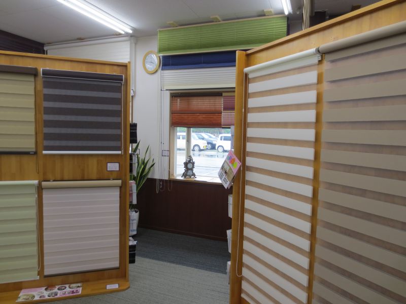 ゆうあい諏訪店(長野県茅野市)では、オーダーカーテンの他、ブラインド・ロールスクリーン・プリーツスクリーンなどの実物サンプルを多数展示しております
