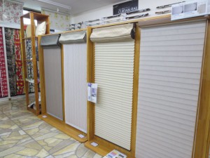 ↑ダブルタイプのシェード等の展示