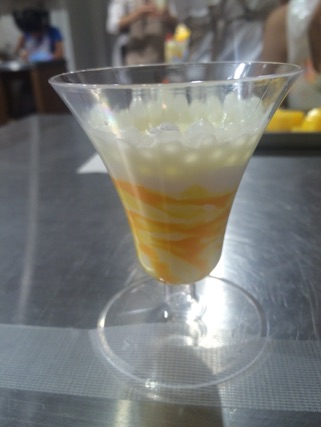 マンゴーソースとクリームをうまく混ざるように