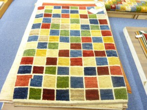 以下店内にあるペルシャギャベの写真を掲載します。ペルシャギャベにも様々なランクがあって、主に折り方が細かければ細かいほど手間がかかるために時間がかかり、その分お値段も高額になります。元々のギャベは荒く太く厚くだったのですが、最近のはやりは薄く、細かく、が主流になってきております。そうすることでギャベの欠点であった抜け毛が軽減出来るようになりました。従来のギャベは抜け毛が凄かったからですね。ちなみに一般的な粗くおってあるインドギャベは抜け毛が凄いですので、お気を付けて下さい。当店では抜け毛が少ない高密度で織ってあるインドぎゃべもご用してあります。ペルシャギャベにはゾランバリなどのいろいろなブランドがありますが、当社ではイラン産のファーハディアン社(FARHADIAN)製のギャッベを取り扱っております。長野県でのファルハディアン社のギャベの取り扱いは当社にお任せください。