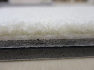 最後にサンダムE45+東リパネルカーペットアタック350を組み合わせた部分のアップ写真を掲載しておきます。東リのアタック自体も優れた防音性能がありますが、それプラスサンダムE45を使えば、後からする防音対策としては最強の組み合わせと思います。
