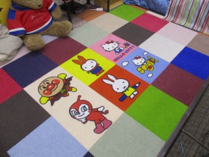 こども向けのアンパンマンやばいきんまんなどのキャラクターのタイルカーペットもあります。
