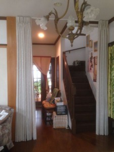 さて、仕事のお話。 先日、リビングと玄関、階段の間仕切りでカーテンを施工して来ました。 本格的に寒くなってきましたね。 間仕切りの寒さ対策もお任せください。