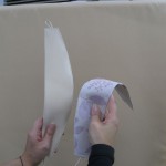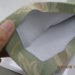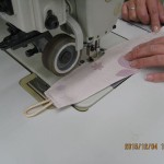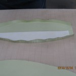 アイロンで形を整えたら芯地を1枚はずします。あとはミシンで同じように縫います。・・裏面に芯地がないので少々縫いづらくなりました・・