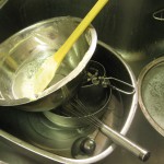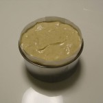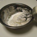 無事に焼けました。クリームは犬用ケーキではヨーグルトで代用するらしいです。前日からヨーグルトの水分を切って置くとクリームチーズのような感触になっています。これを生クリームの代わりに使うらしいです。
