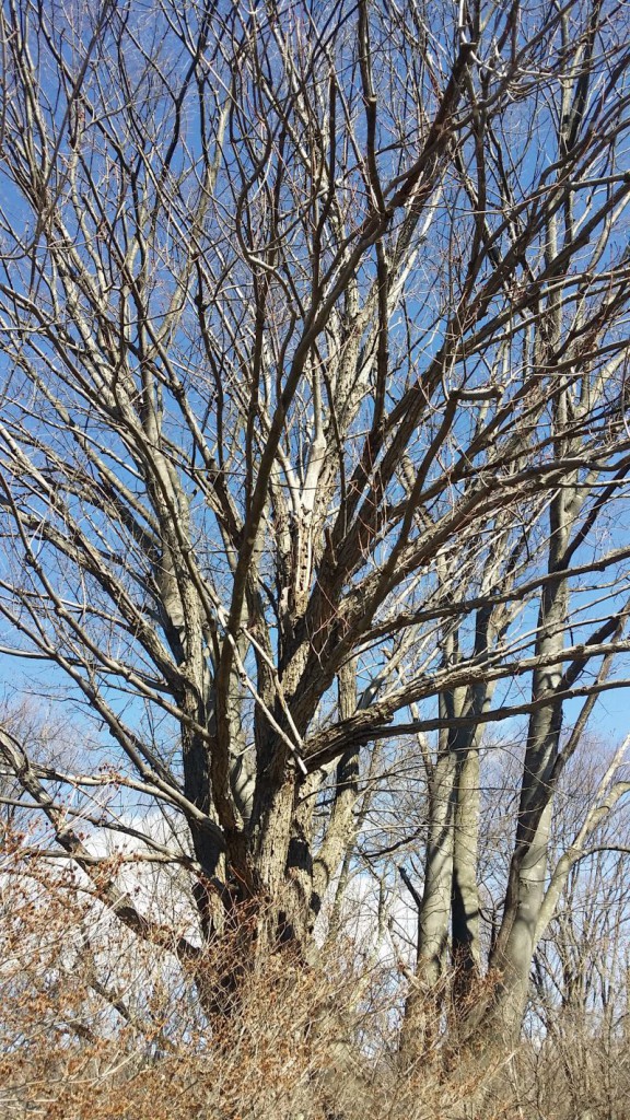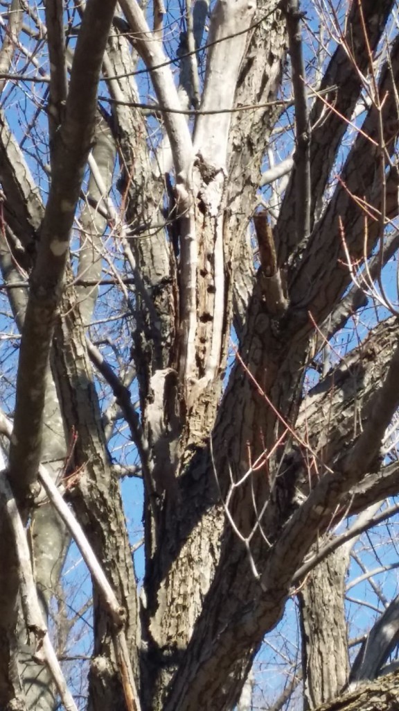 さてこの木のどこ??写真を撮ったときにはもう、キツツキは映ってはいなかったのですが、木に穴がばっちり映っています。