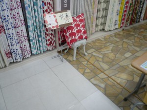 店内の床は、製品のイメージをご覧頂ける様に、色々なタイプの床材を使用しています。