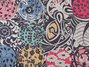 小さい円の中に様々な草花をデザインした生地で、