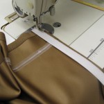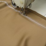 レース生地の場合も表地とほぼ同じ工程で縫っていきますが、レース生地を通常表生地よりも2cm幅がせまく、1cm丈を短く作ります。