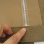 あと違いは、マジックテープの縫い付けが生地表側にオス・裏側にメスを縫い付けます。あとは操作コードを通すため上から6cmぐらい下に穴を開けハトメをつけます。