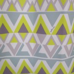 色はイエロー、レッドの2色で森や山をイメージしたような幾何学柄のものなど他にも多数サンプルを展示しています。