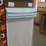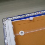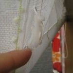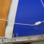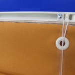 余談ですが、ご自宅でシェード生地を洗濯するつもりでレールからはずす場合は、シェード生地を下までおろしてシェードの紐を引っ掛けている部品から紐をほどきます。紐は引っ掛け部分にクルクル回して留めてあるだけです。紐の一番下部に印をつけても良いですね。紐は垂れ下がった状態のままにしてからレールのマッジテープをはずします。シェード生地が上がった状態ではずすと再び生地をつけた時紐調整がうまくいかないことがあるので注意したほうがよいですね。