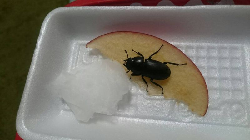 夏に有名な昆虫が、ただ今リンゴを食しております。