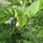 自宅の庭に植えてあるブルーベリーの実が徐々に熟しはじめました。去年はほとんど収穫する前に鳥に食べられたらしく気がつくと無くなっていましたが、今年はこまめに収穫していっています。