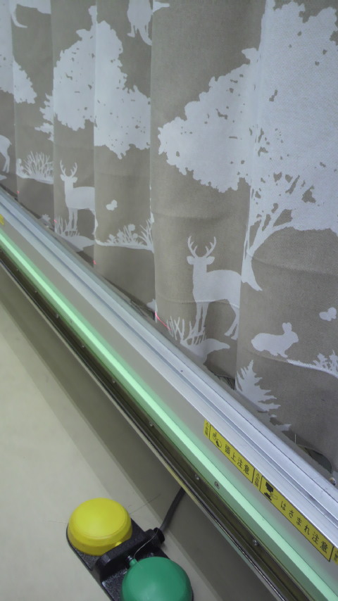長野県にあるゆうあい縫製所ではカーテンのお直しも受けていますので、丈直しなどの依頼があったときには、この裁断・丈決め機を使って生地の寸法を切ります。丈直しは既に山ヒダがあるので機械のカッターでは切らず(切り口がガタガタになるので)、チャコペンで印を付けてハサミで切ります。カーテン直しだと特にカーテン生地を吊った状態で丈を見たほうが正確に長さが切れます。丈直しなどでも専門機械のあるこちらでぜひお願いします。