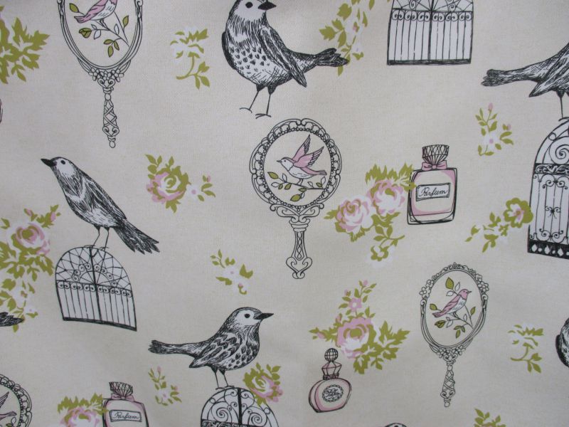 子供部屋にも使える、優しい色合いと、鳥かご&小鳥の生地。
