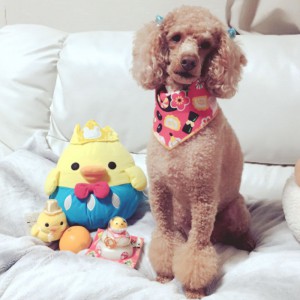 ホームセンターで一目ぼれした「おせち柄のスカーフ」を巻いてみました。