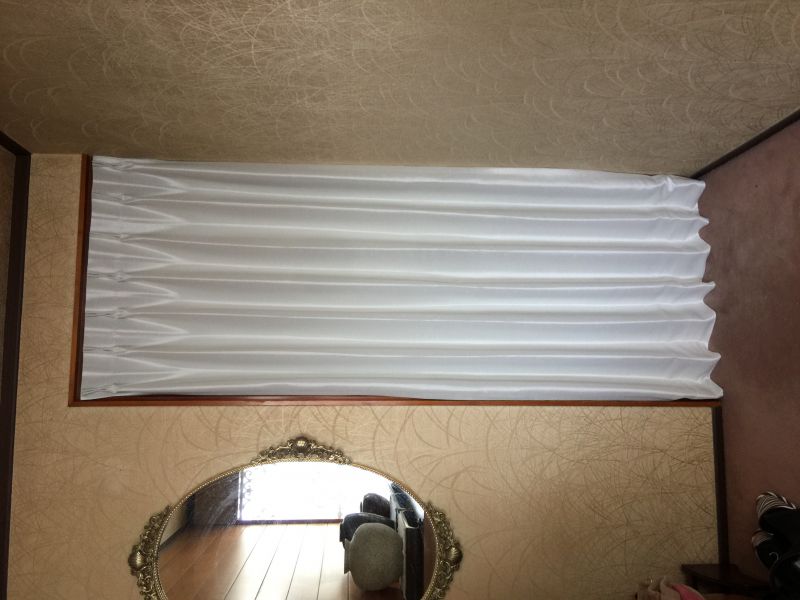 玄関より冷えた空気がリビングに入り、暖房をつけてもなかなか温まらないとのことでカーテンの取り付けを行いました。