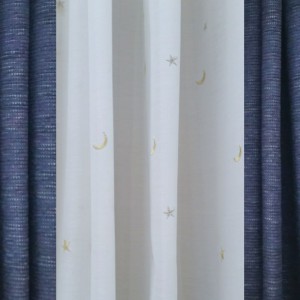 それは、落ち着いた雰囲気のドレープカーテンを選んだら、レースカーテンには少し遊びゴコロを入れてみようよ、の提案です。センスの良い遊び心は大切なスパイスです、カーテンにも人生にも。(それっぽい)