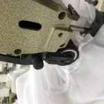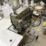 フリル用ミシンでフリルを作りながら、本体に合体させていきます。