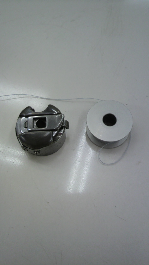 下糸も上糸のようにボビンを使わずに直接糸本体から出来れば良いのですが、まだ1本針での本縫いミシンはまだ無いそうです。残念ですね。