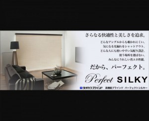 それではタチカワブラインドさんの定番商品「シルキー」よりさらにグレードアップした商品をご紹介します。その名も「パーフェクトシルキー」 強気なネーミングです。